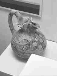 carved on stone. * + + + +++++ holding a cup.